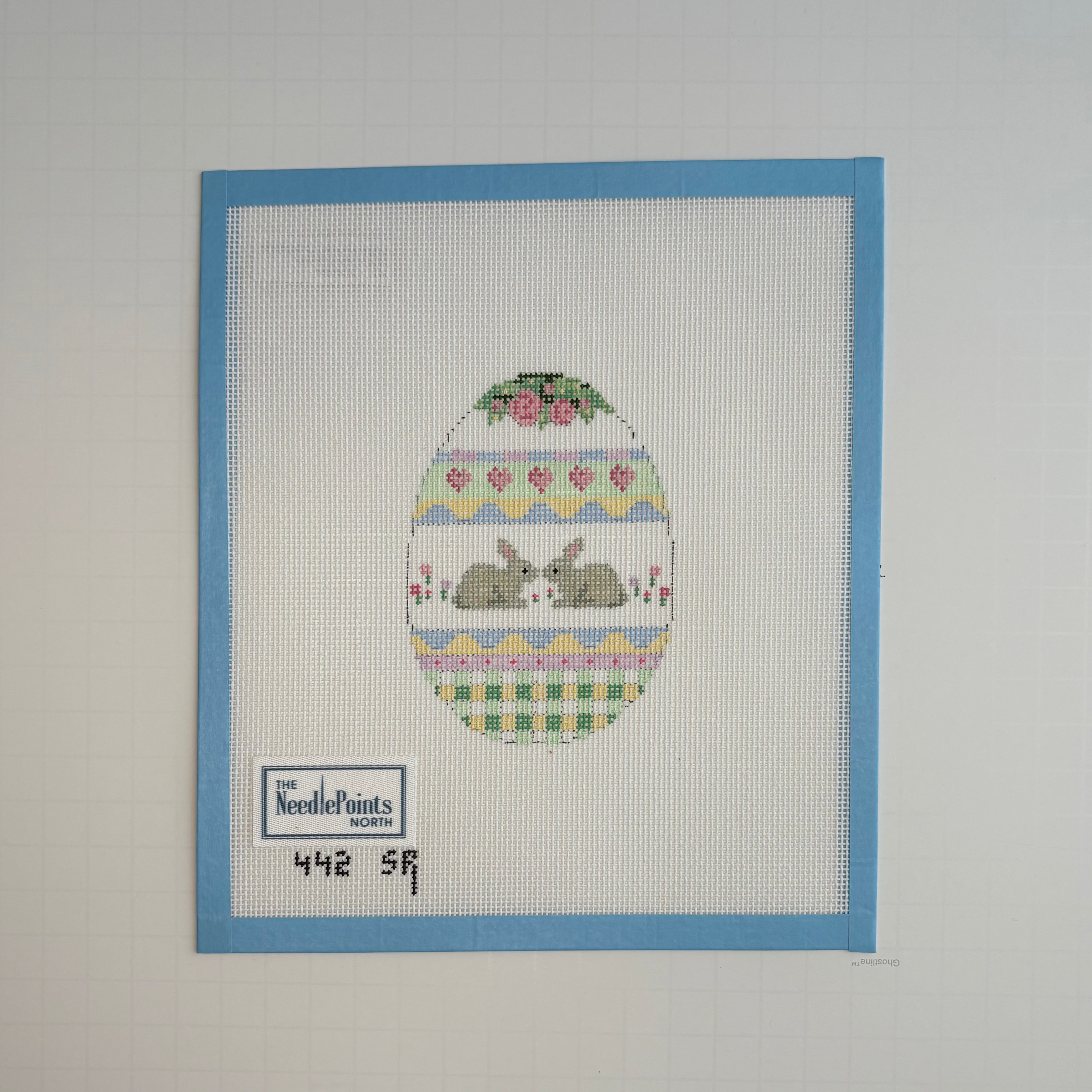 Egg shaped with bunny on 18 mesh